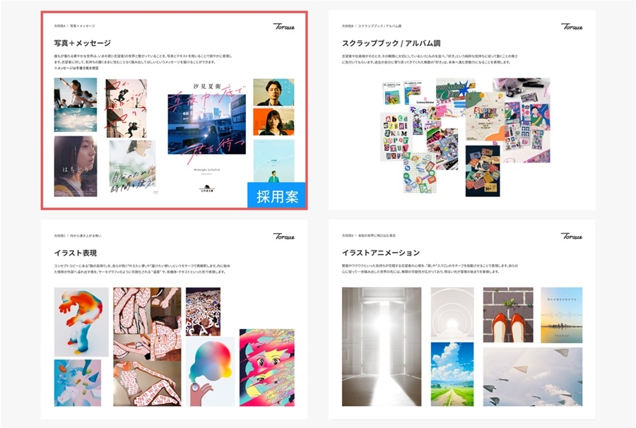 表現の検討にあたっては、複数の方向性が挙がりました。写真と言葉で感情をストレートに伝える案、スクラップブックやアルバムのような編集感を持たせる案、イラストやアニメーションによって内面を可視化する案など、多様なアプローチが検討されました。