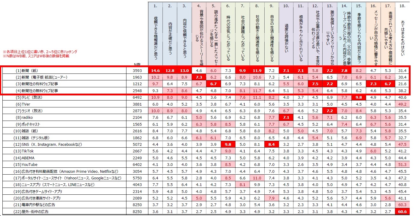 1.メディア間比較で明らかになった新聞の価値。